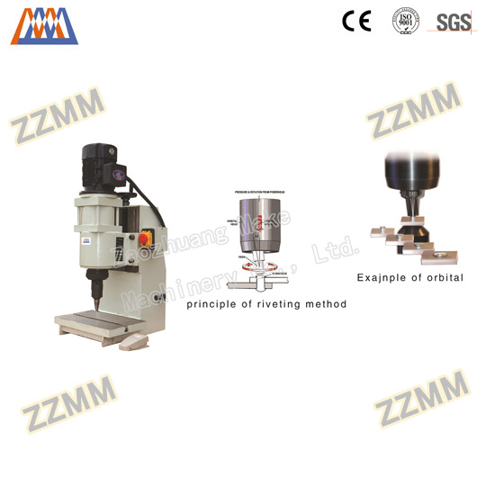In riveting machine the tool rotates at a fixed angle.The rivet material undergoes a deformation due to hammering action, which results in faultless riveting with practically no alteration of the metal structure. The force for riveting is given by power unit. The operation is noiseless and uses low cost toolings. The micromatic stroke adjustment enables quick set-up. Stepless adjustment of the riveting force, time and stroke allows the machine to perform for a variety of applications. It is used to rivet scissors, door hinges, automobile locks, cycle parts, brake shoe and clutch face in automobiles etc.